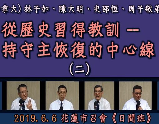 感謝主,今天我們回顧以過六十多年來的召會歷史,使我們看見,這乃是神奇妙的歷史,這歷史包括了我們。祂的歷史建立起我們基督徒的生活,至終要完成祂永遠的經綸,達到新耶路撒冷終極的建造。