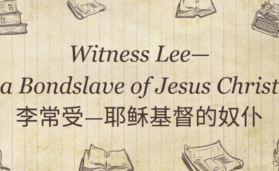 Resource:https://youtu.be/aKJ3aD9xGvc Brother Chen Xun’s Fellowship with the Serving Ones 陈洵弟兄对服事者们的交通