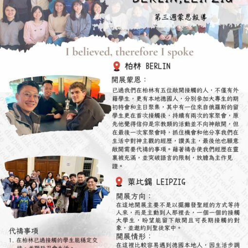 何等喜樂,能和你們交通近來主在德語世界的行動。這位奮力活動的三一神,正加強祂柔細的分賜和強力的輸供,為要興起祂在德語區的眾召會,作耶穌的見證。