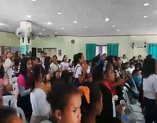 Children in a Chinese farm house singing a Christian song organically , without being conducted by a teacher