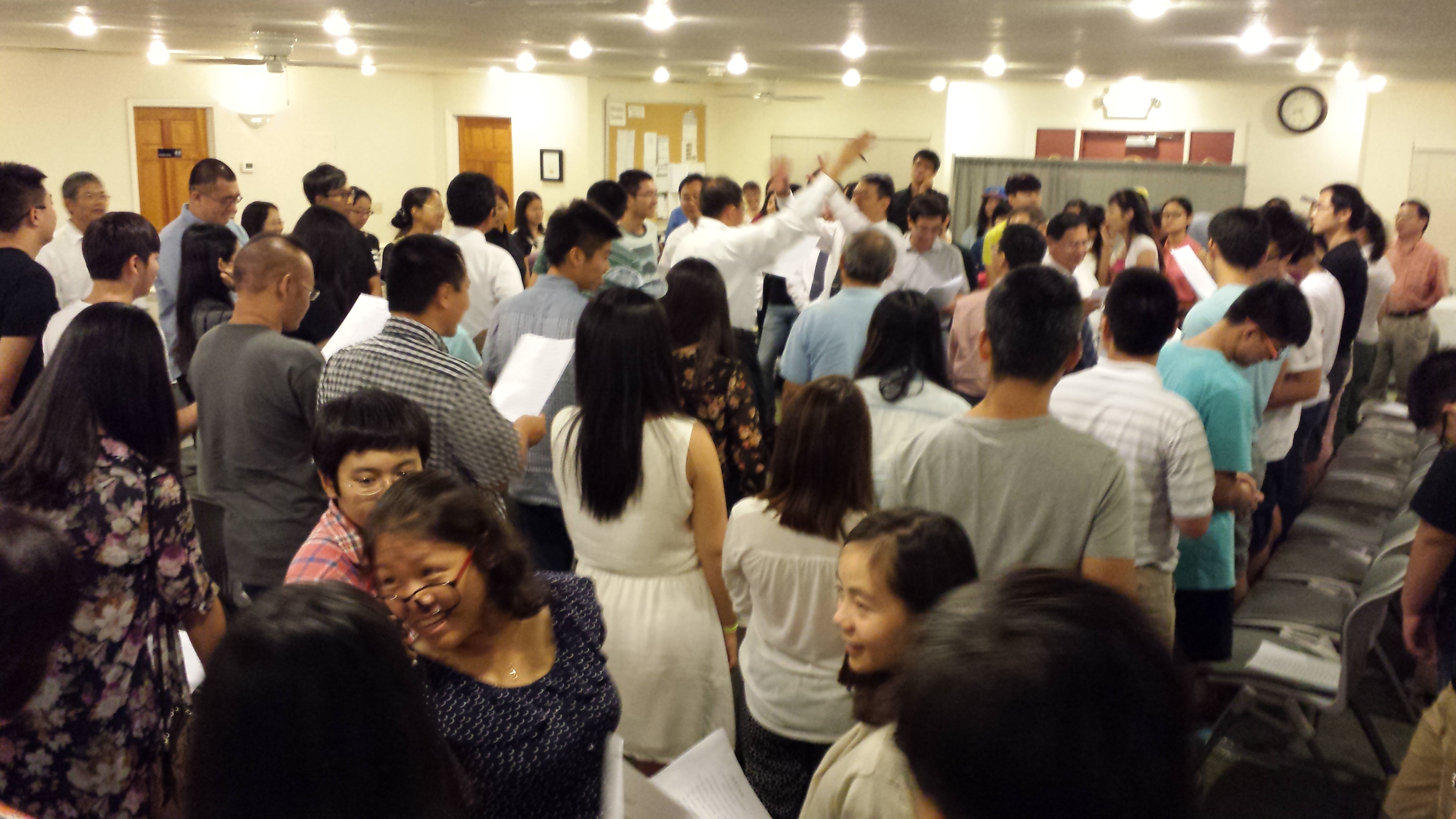 What a glorious gospel in-reaping meeting for the churches in north central and central Florida on Saturday, September 6th! A total of some 64 gospel friends/160 total attendees in the meeting almost maxed out the seating capacity of the Church in Tampa meeting hall, including 11/25 from Gainsville, 3/10 from Orlando, 50/125 from Tampa/Sarasota area respectively. They are mainly Chinese-speaking students and scholars from all over China now study or work at UF, UCF and USF. The meeting started at 5:30pm and ends at about 9:45pm. A few English speaking adults and young people also attended the meeting.