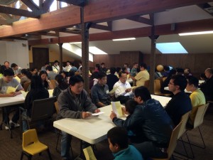 这次福音聚会晚上到会的人数大约有60几位。现场签到的福音朋友计有29位。我们于饭前先唱了『属天的家乡』这首诗歌,接着就一同享用弟兄姊妹们用心准备的丰富的晚餐。饭后再唱大本诗歌713首后就开始信息的分享与福音见证。接着我们分成六组进行小组讨论,讨论情形非常热烈并有不少对基督与福音上的问题。讨论结束后我们再唱一次属天的家乡并由冯弟兄与周弟兄来为我们做结束的信息分享与呼召。