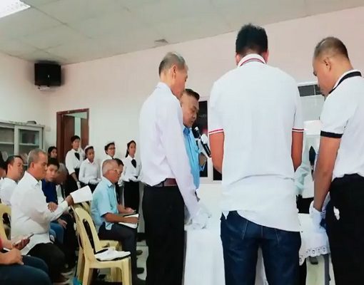 步,在發送聖經的桌子前聽著弟兄姊妹們的分