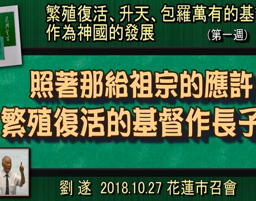 已发表 2018-10-30 【 刘遂「《照着那给祖宗的应许繁殖复活的基督作长子》」】花莲市召会 “Propagating the Resurrected Christ as the Firstborn Son according to the Promise Made to the Fathers” Spoken by Liu Suey | The Church in Hualien City Source: https://www.yo […]