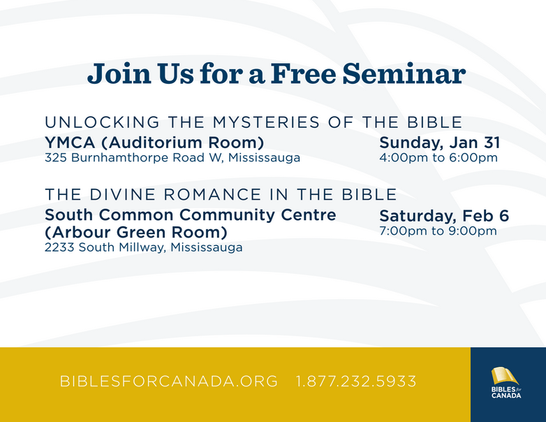 2016 Bible Seminars Mississauga, Ontario,Canada 二〇一六年加拿大安大略省密市圣经座谈会 已发表 2016-01-22 Ontario 2016 events and seminars Source: Mississauga, ON 2016 events and seminars