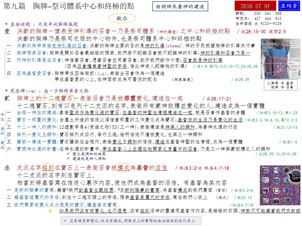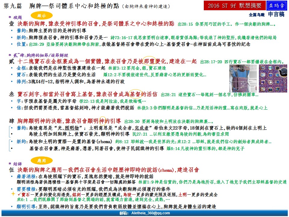 二〇一六年夏季训练第九篇—胸牌–祭司体系中心和终极的点 Message Nine of 2016 Summer Training—The Breastplate—the Central and Ultimate Point of the Priesthood 已发表 2017-01-20 下载并阅读本篇PDF文档,请点击进入:2016 ST-9f