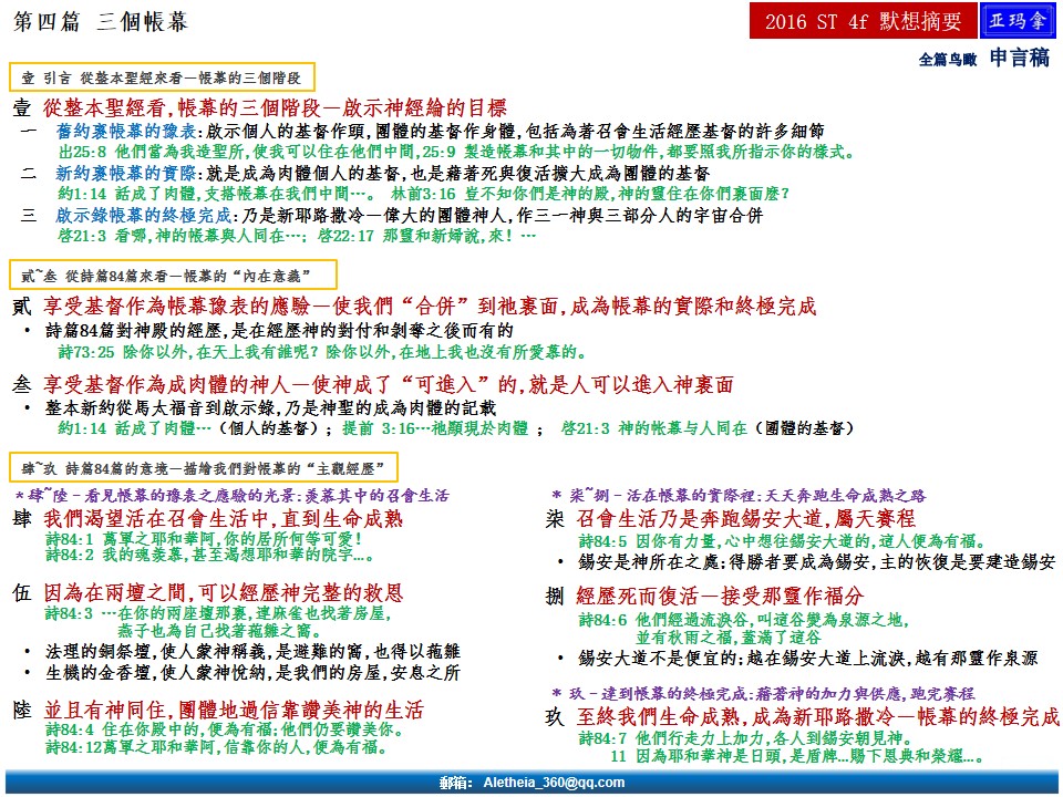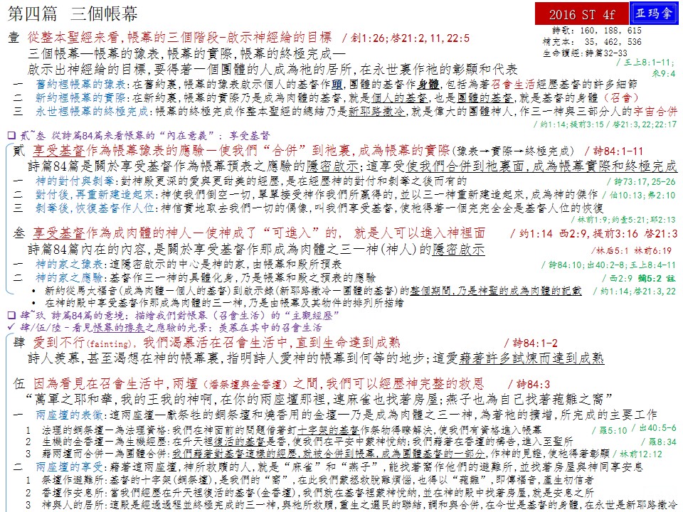二〇一六年夏季训练第四篇—三个帐幕 Message Four of 2016 Summer Training—The Three Tablenacles 已发表 2017-01-20 下载并阅读本篇PDF文档,请点击进入:2016 ST-4f