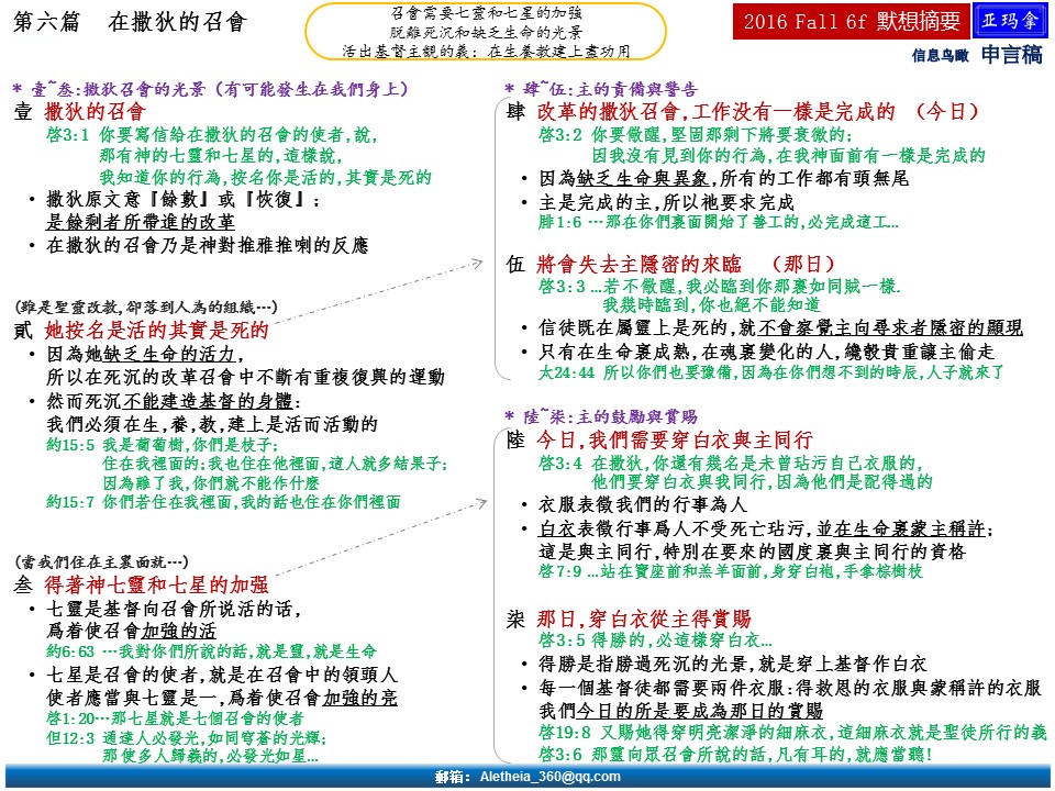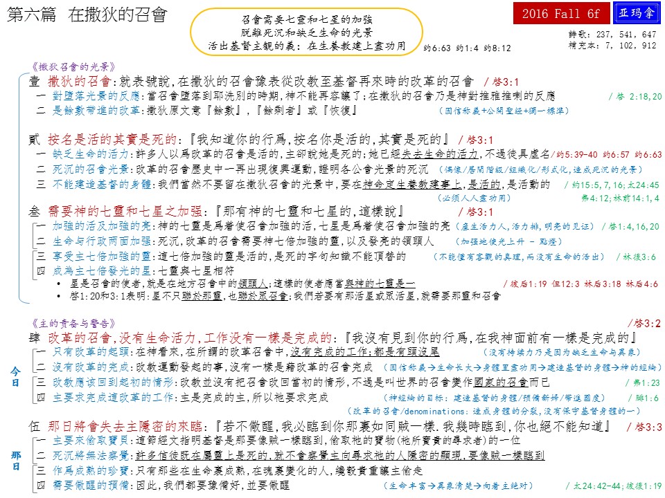 二〇一六年秋季训练第六篇—在撒狄的召会 Message Six of 2016 ITERO-Fall—The Church in Sardis 已发表 2017-01-20 下载并阅读本篇PDF文档,请点击进入:2016 Fall-6f