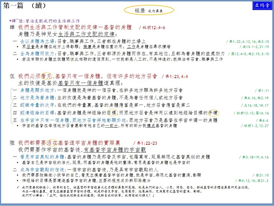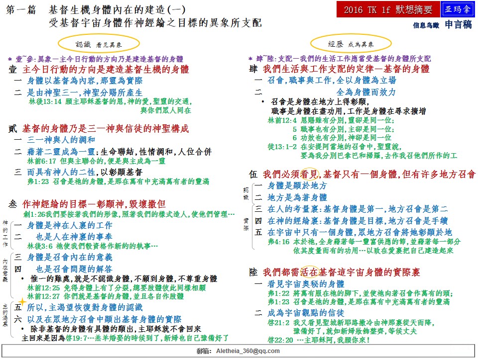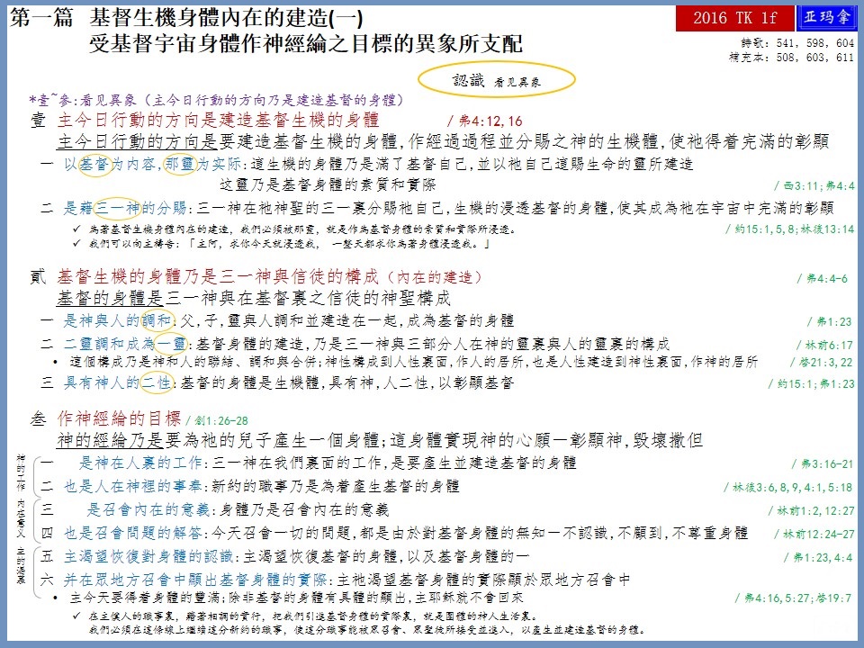 二〇一六年感恩节特会第一篇—基督生机身体内在的建造(一)受基督宇宙身体作神经纶之目标的异象所支配 Message One of 2016 Thanksgiving Conference—The Intrinsic Building Up of the Organic Body of Christ (1) Governed by a Vision of the Universal Body of Christ as the Goal of God’s Economy 已发表 2017-01-22