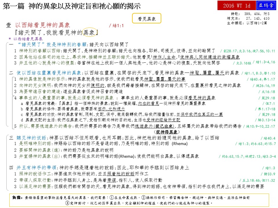 二〇一六年冬季训练第一篇—神的异象以及神定旨和祂心愿的揭示 Message One of 2016 Winter Training—Visions of God and the Unveiling of God’s Purpose and the Desire of His Heart 已发表 2017-01-24 下载并阅读本篇PDF文档,请点击进入:2016 WT 冬季訓練 第一篇 d