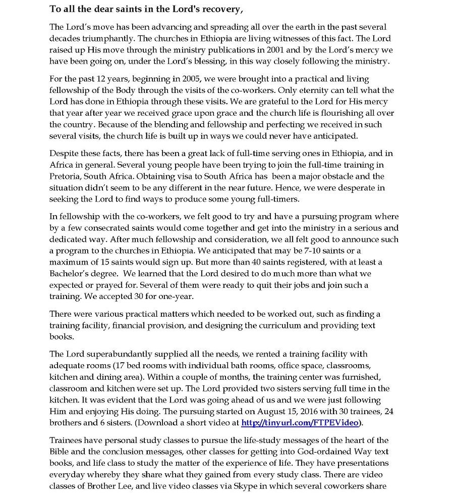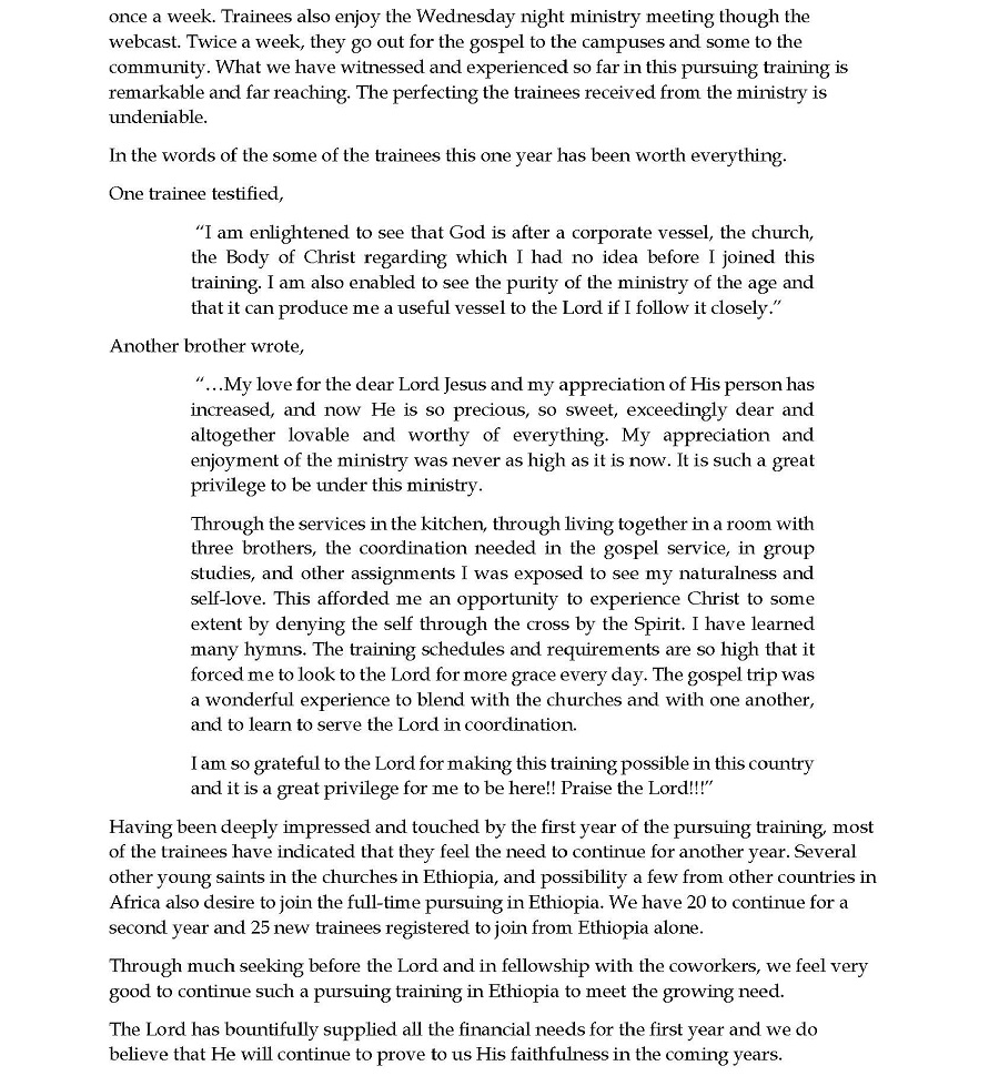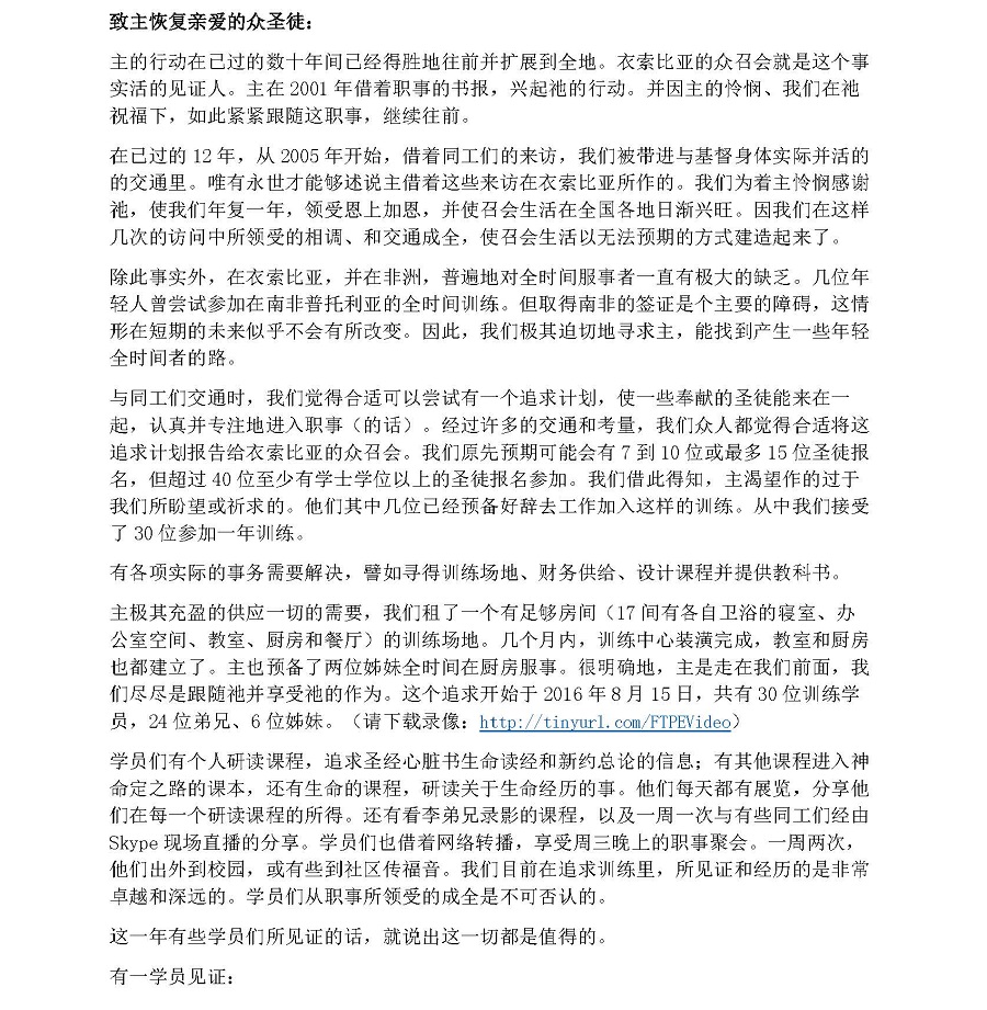 埃塞俄比亚全时间追求报道 Report on the Full-time Pursuit in Ethiopia 已发表 2017-06-30 Full-time Pursuing Ethiopia 2016 & 17 Report – Rev 1 Full-time Pursuing Ethiopia 2016 & 17 Report-Chinese Simplified