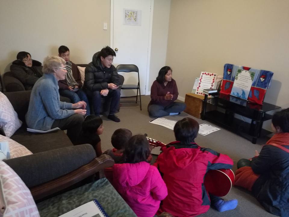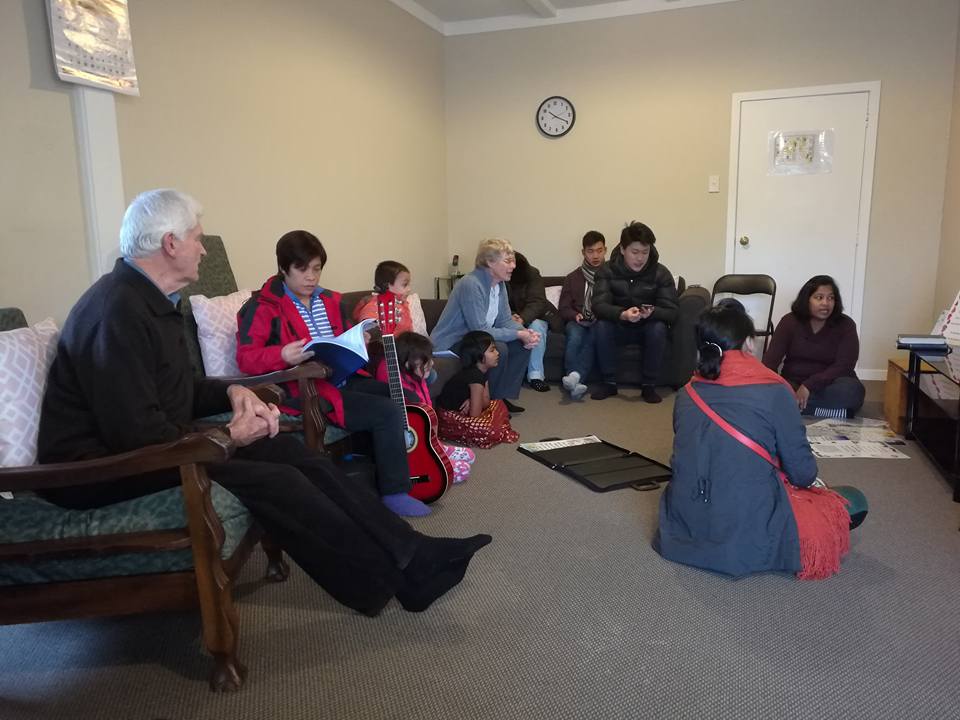 主日聚会三部曲: (一)10点-10点40分 儿童聚会,当地圣徒四个家庭有六位儿童,因此,他们的主日先儿童聚会,大人与儿童一起唱儿童诗歌,之后有一位讲圣经故事,儿童们也踊跃回答各种圣经知识提问,形式生动话泼,大人们也一同回转向婴孩。 (二)10点40-至11点20擘饼聚会。唱诗、赞美、祷告、敬拜,虽然人数不多,但以灵以真的敬拜,在地如在天。 (三)11点20-至12点,籍着申言、见证、彼此分享,彼此勉励,经历一个身体一位灵的合一见证。 最后同心合一祷告,求主加添在当地召会的人数,加强金灯台的见证。