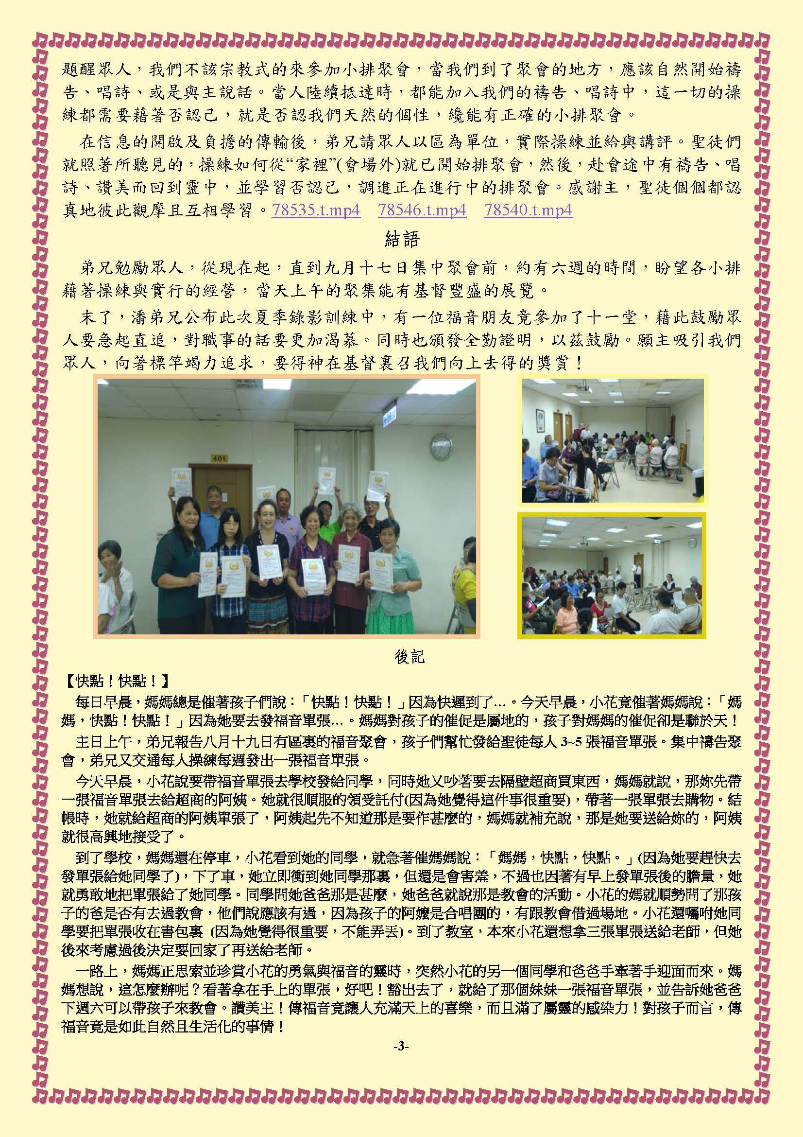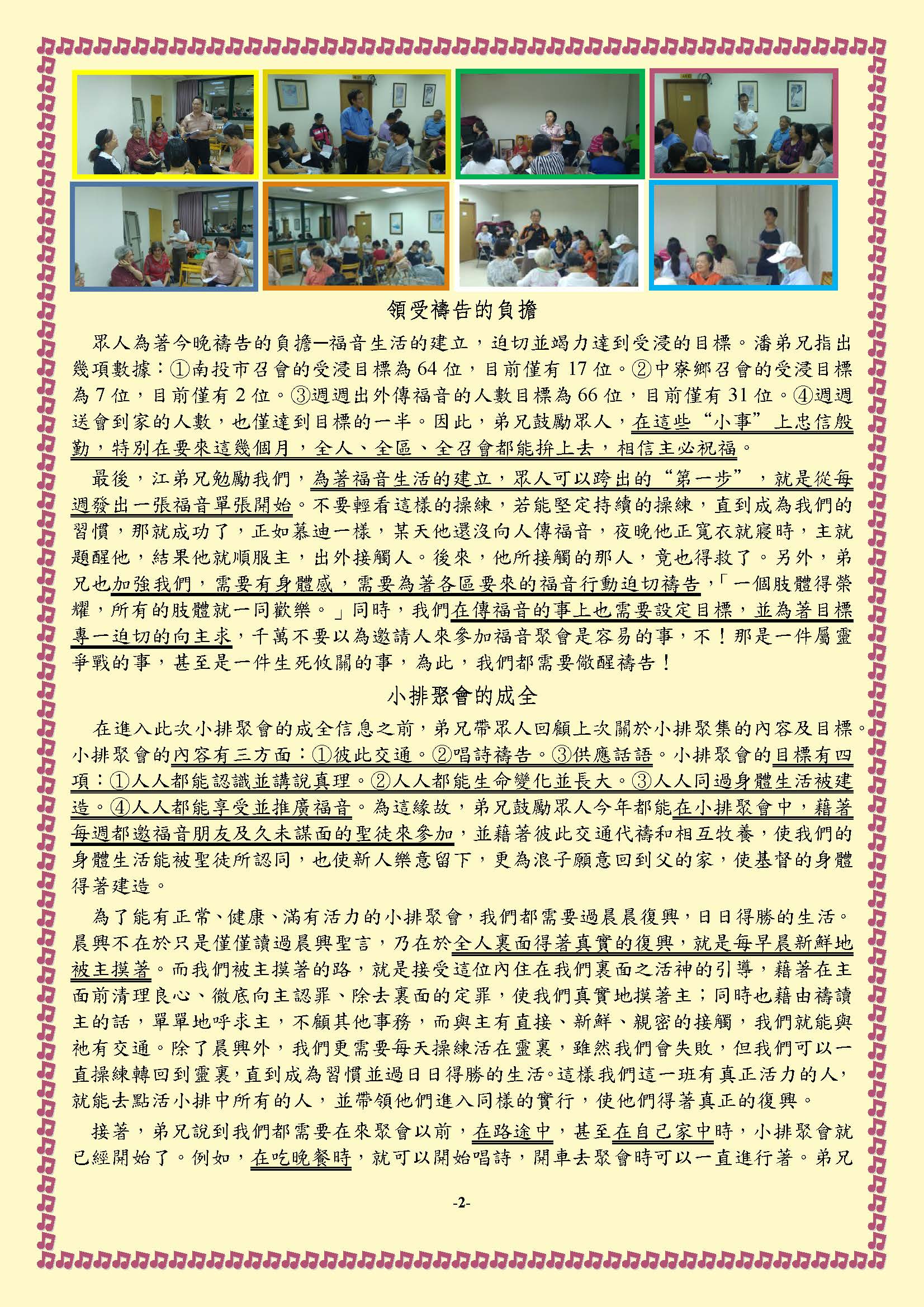 二○一七年南投市与中寮乡召会集中祷告聚会报导 Report 2017 Combined Prayer Meeting of the Church in Nantou City with the Church in Zhongliao Township 已发表 2017-08-10