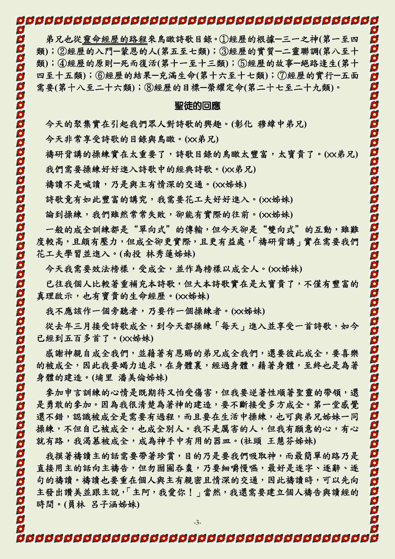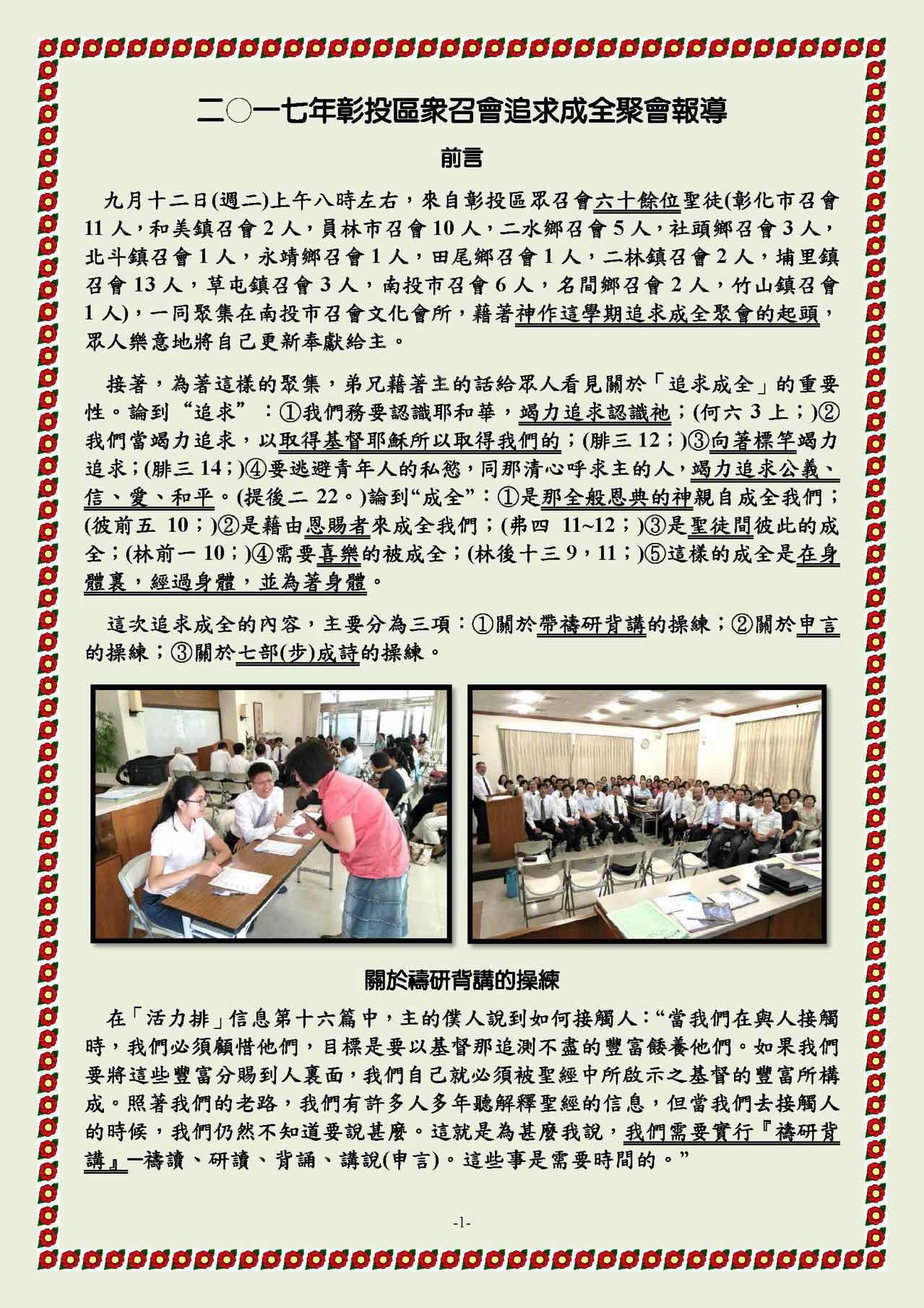 二〇一七年彰投区众召会追求成全聚会报导 2017 Report on the Perfecting Meeting for the Pursuit among the Churches in Changhua-Nantou 已发表 2017-09-14