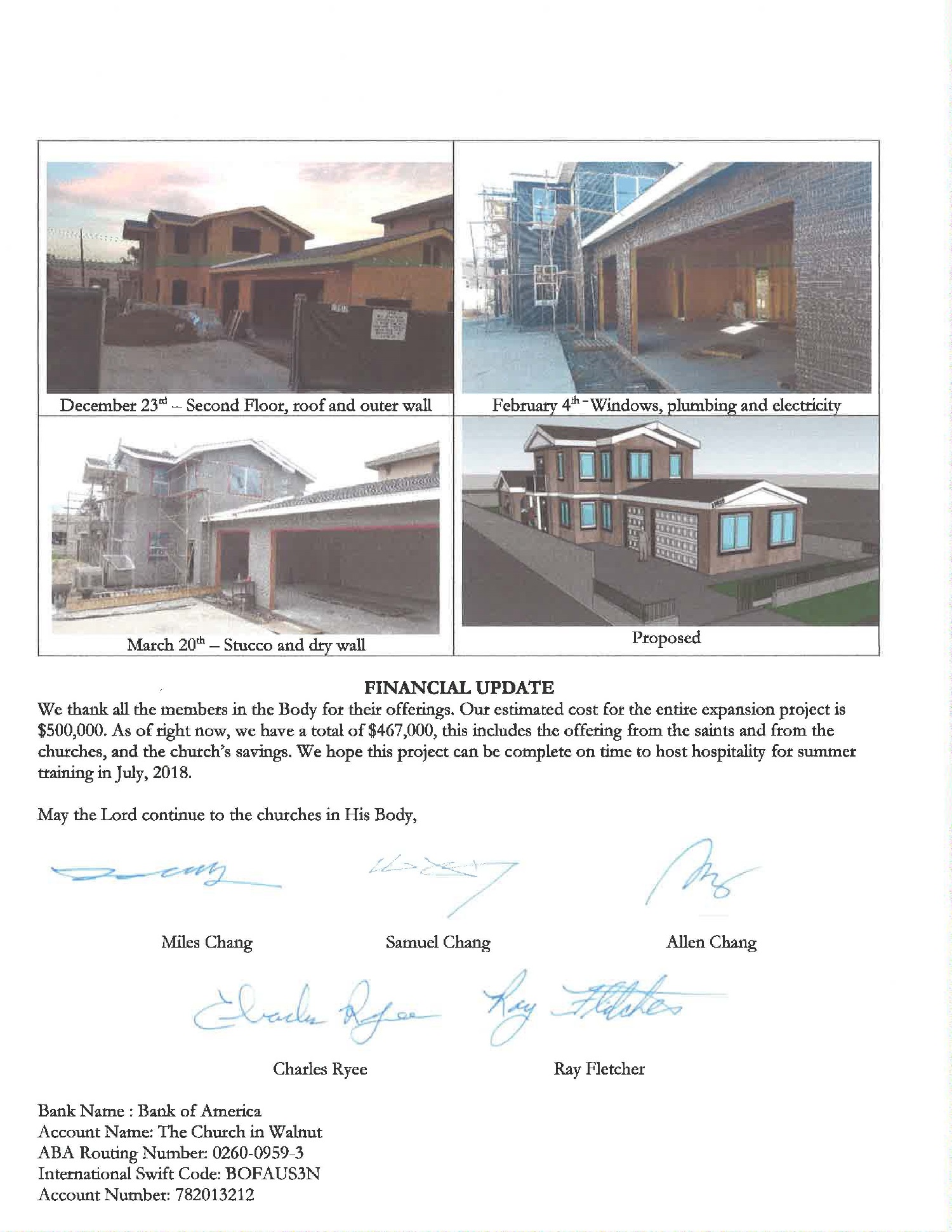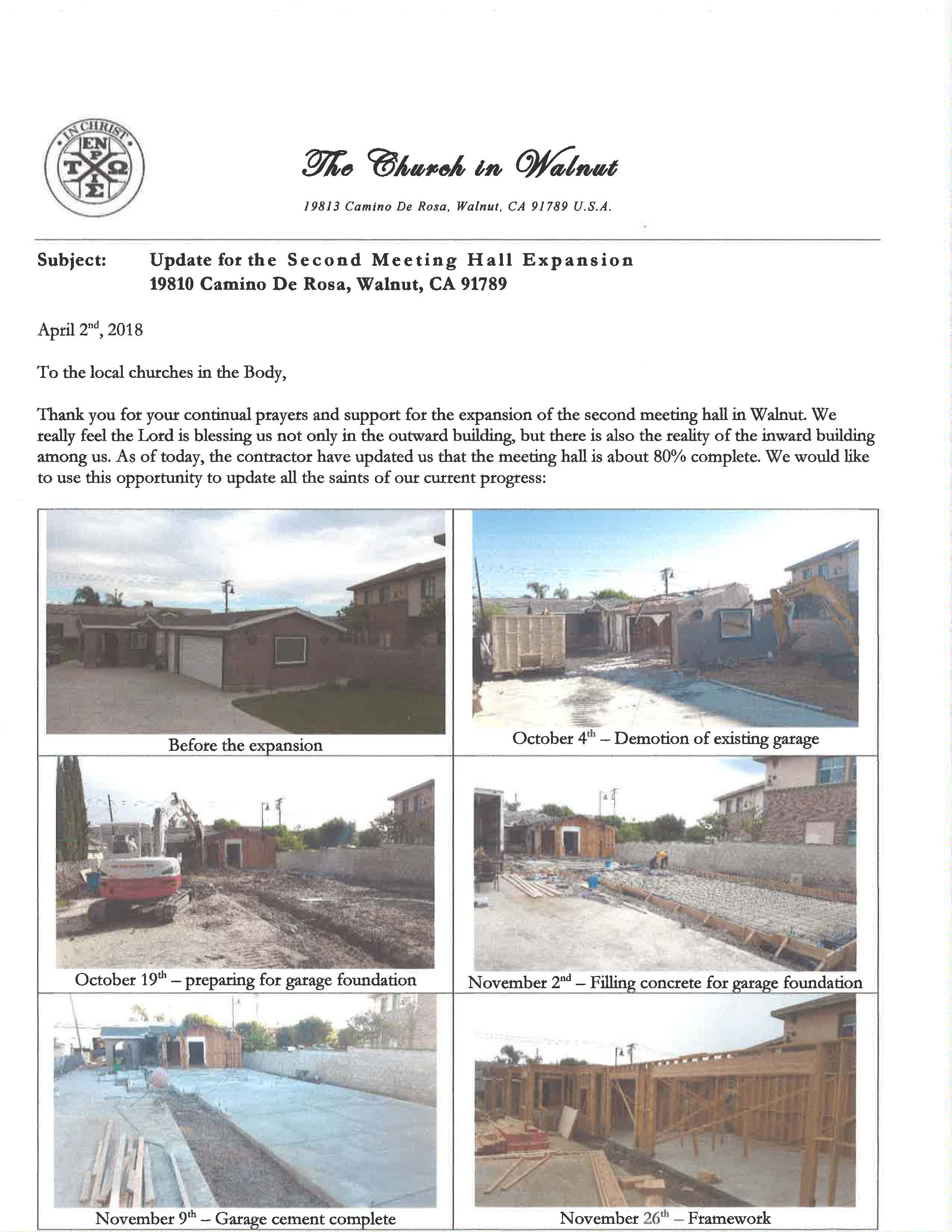 Update from the Church in Walnut City, South California 南加州核桃市召会简报 已发表 2018-04-21 Walnut Meeting Hall Update