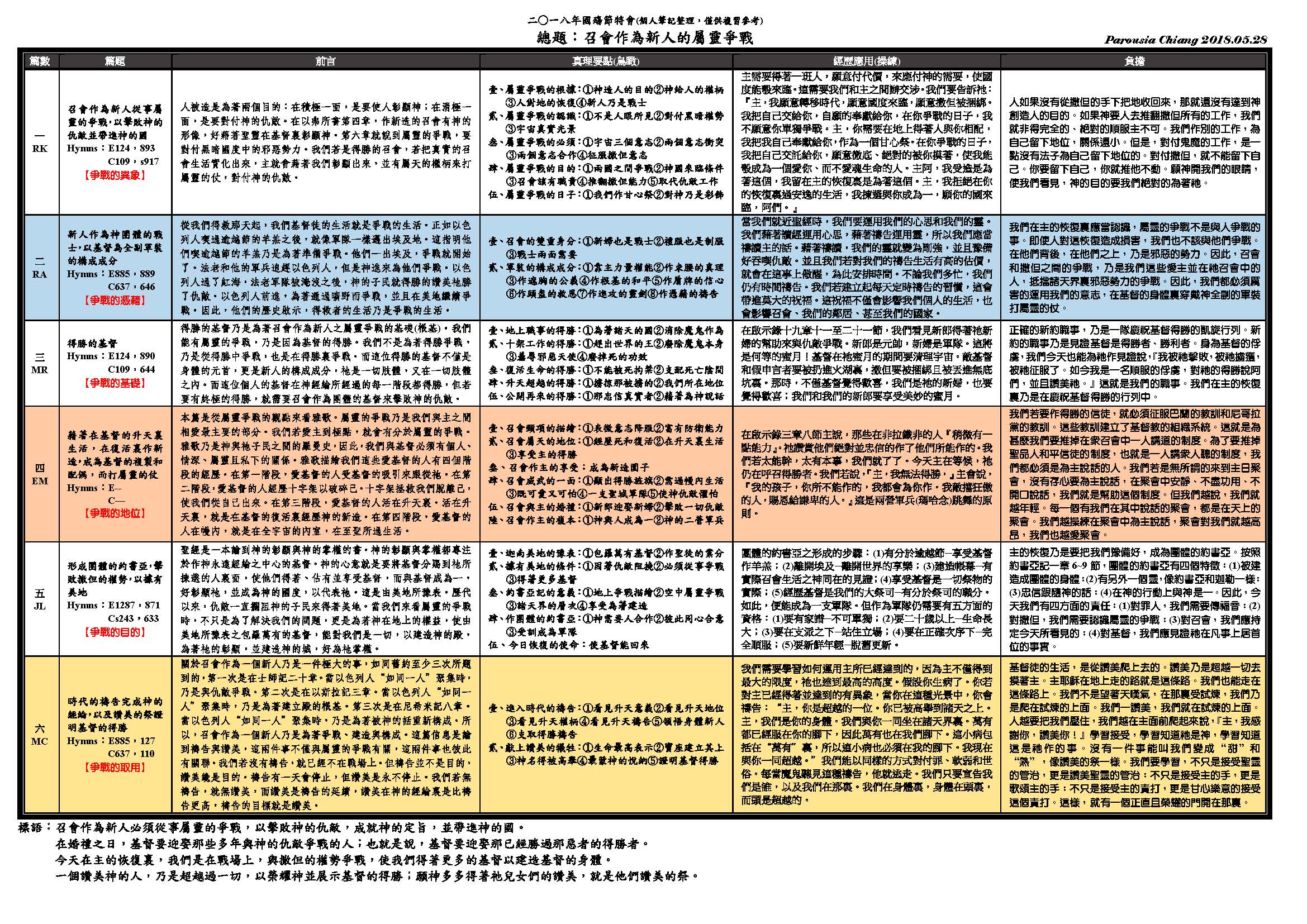 二〇一八年国殇节特会总题:召会作为新人的属灵争战 General Subject of the 2018 Memorial Day Conference : The Spiritual Warfare of the Church as the New Man 已发表 2018-06-09