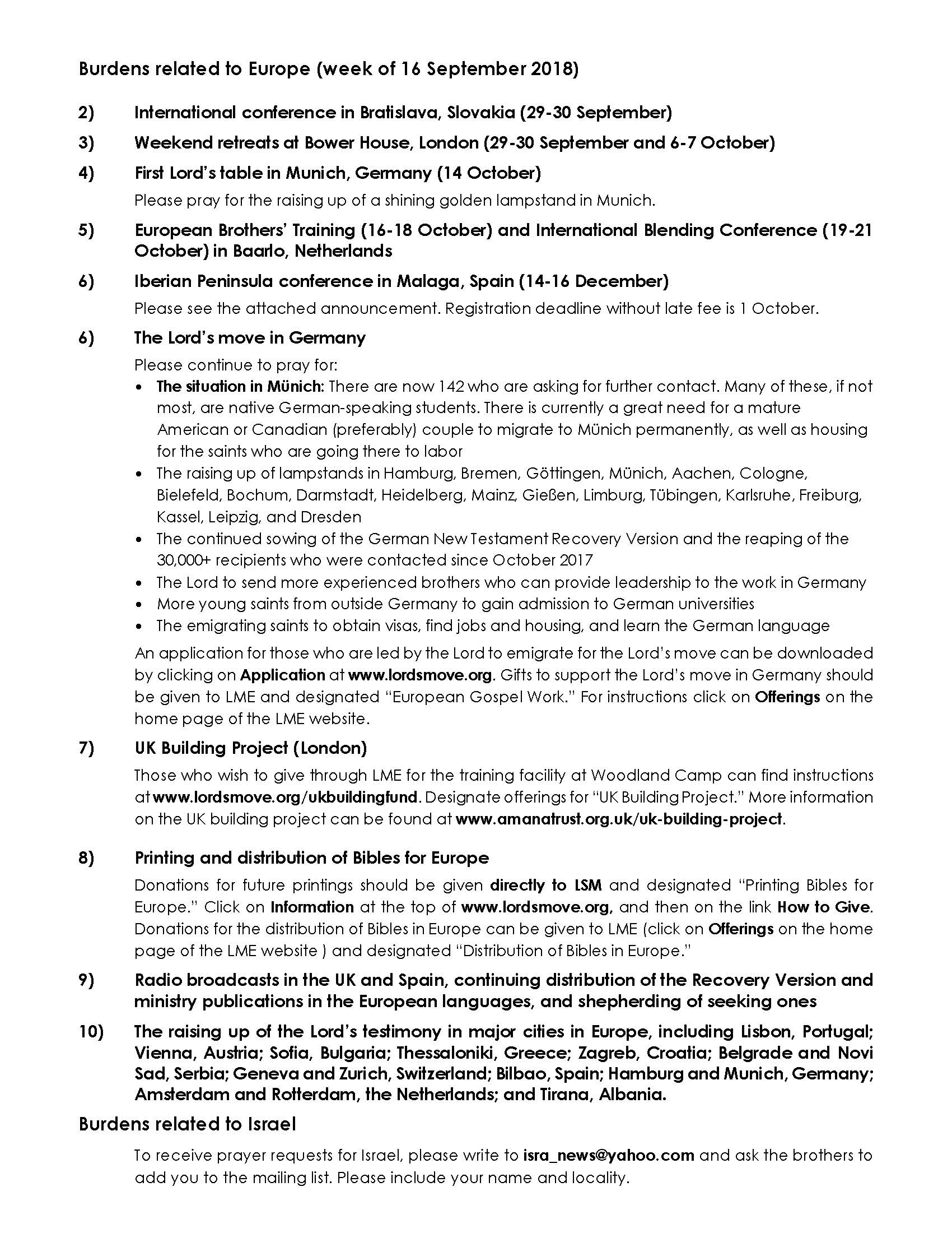Current Prayer Burdens Related to Europe 欧洲当前祷告负担 已发表 2018-09-19 PrayerBurdens444 Source: http://lordsmove.org/pdfs/PrayerBurdens444.pdf