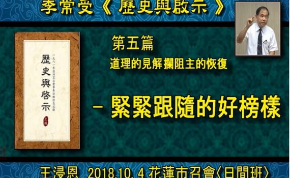 『道理的見解攔阻主的恢復 ─ 緊緊跟隨的好榜樣』】2018.10.4 花蓮市召會《日間班》 Sour […] 【王浸恩《历史与启示》第五篇】花莲市召会 Message 5 of “The History and Revelation” Spoken by …