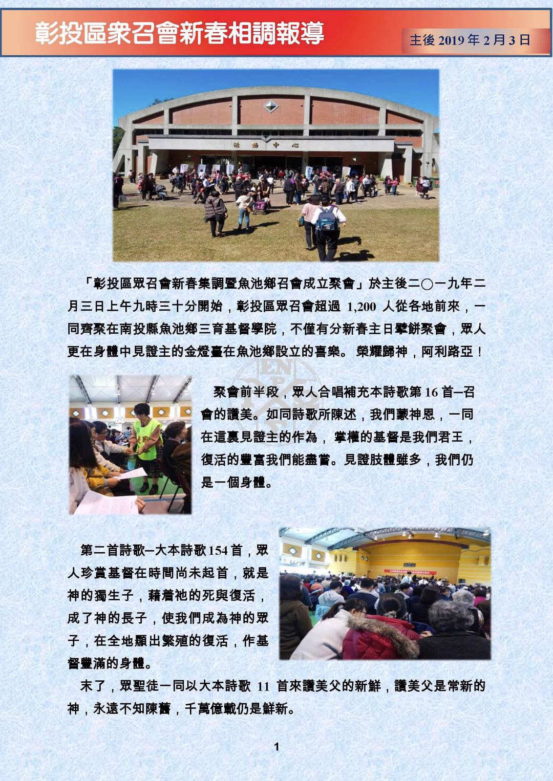 彰投区众召会新春相调报导 Report on Chinese New Year Blending in the Churches of Changhua – Nantou District 已发表 2019-02-11