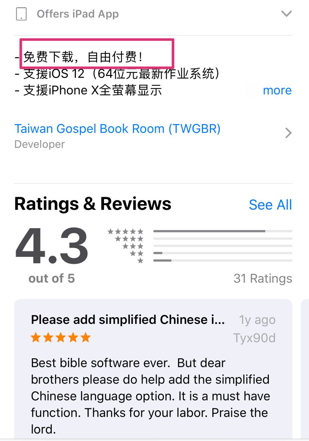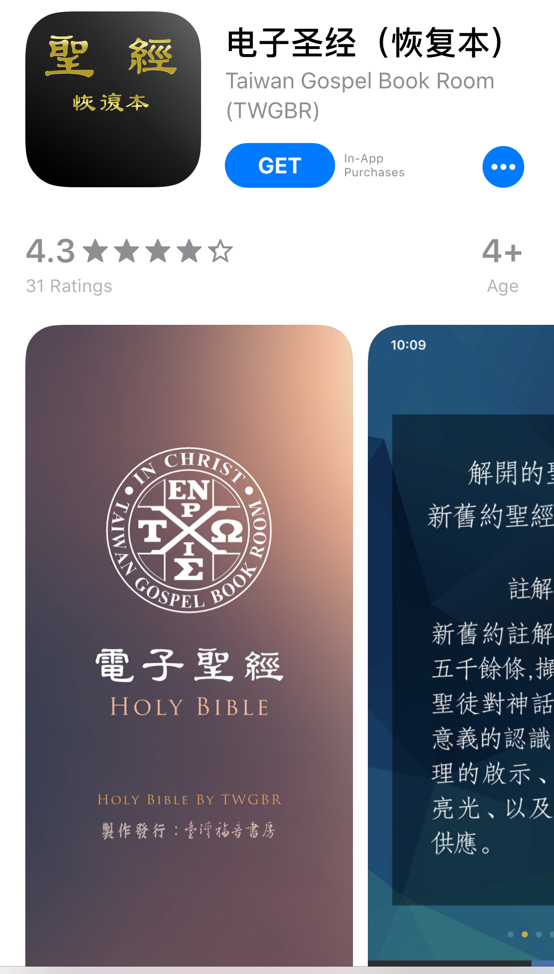 【免费下载】台湾福音书房 iOS、ANDROID电子圣经(恢复本)两款APP【Free Download】iOS, ANDROID Electronic Bible (Recovery Version) Two Apps Published by Taiwan Gospel Bookroom 已发表 2019-02-23 轉貼:臺灣福音書房所發行之iOS、ANDROID電子聖經(恢復本)兩款APP,即日起正式調整為-免費下載,自由付費!歡迎分享、一同推廣。下載網址:http://bible.twgbr.org/setup 【公告日期:2019/1/11】