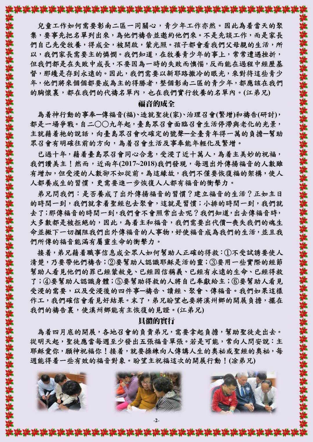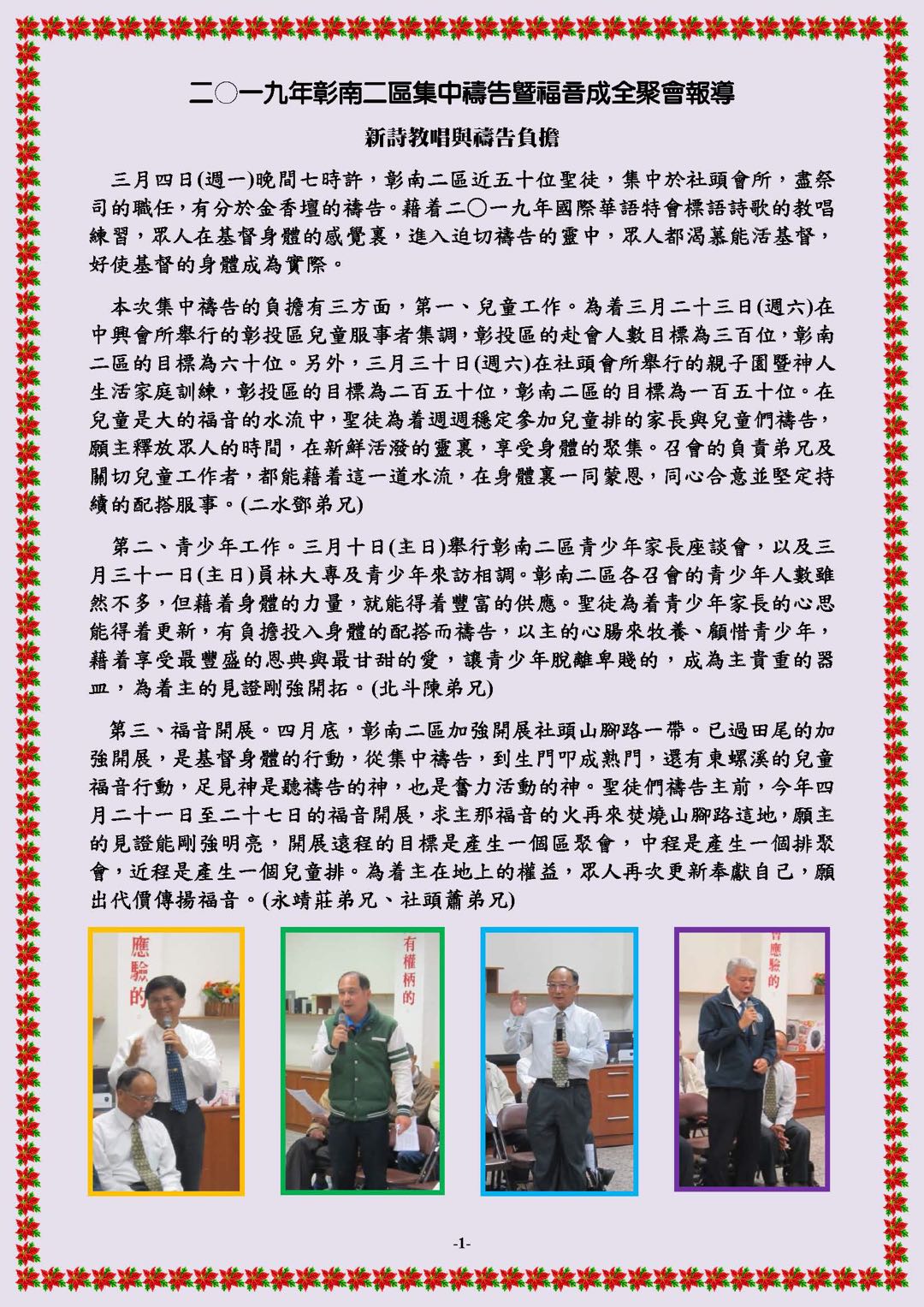 二〇一九年彰南二区集中祷告暨福音成全聚会报导 Report on 2019 Combined Prayer and Gospel Perfecting Meeting in Changhua and Nantou City 已发表 2019-03-07