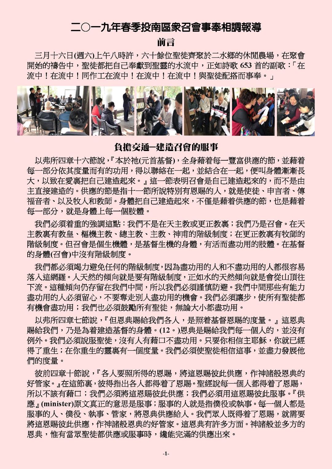 二〇一九年春季投南区众召会事奉相调报导 Report on 2019 Spring Service Blending Meeting among the Churches in TouNan District 已发表 2019-03-20