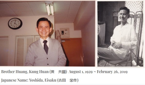 主僕黃共圜弟兄是台中市召會第一位蒙恩得救的本省籍弟兄,也是第一位被李弟兄指定全時間服事主的本省籍弟兄,並且還是台中市召會第一位的本省籍長老和第一屆「財團法人台灣省台中市教會聚會所」董事會的董長之一,與台中市召會有很深的歷史淵源。後來被李弟兄差派去日本(一九六四年)為著主恢復在那裏的工作和見證,黃弟兄一家人近四十年的時間,忠信的在異地勞苦,已為主在日本的恢復奠下穩固的根基。黃師母是台中東海大學畢業,在與家人「強烈反對」的爭戰中,嫁給見不到前(錢)途的「窮傳道人」,四十年間在持家和召會的服事以及主工作的開展上,成為黃弟兄最好的幫助者。黃師母兩年前在赴美國參加華語新春特會(預計回程經過台中參加復興大樓的落成聚會)的出發途中因心肌梗塞安息主懷(成為台中召會難以忘懷的遺憾)。黃弟兄已七十四高齡,喪偶獨居仍忠心服事日本的眾召會,他是埋下去的一粒麥粒,我們已見到許多的子粒在那裏茁壯。