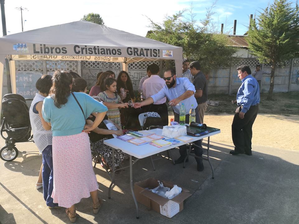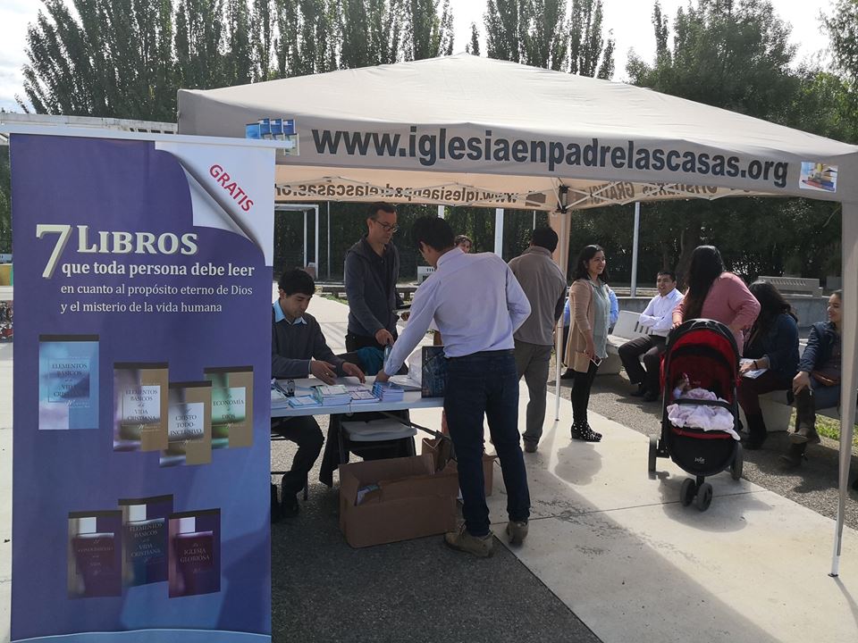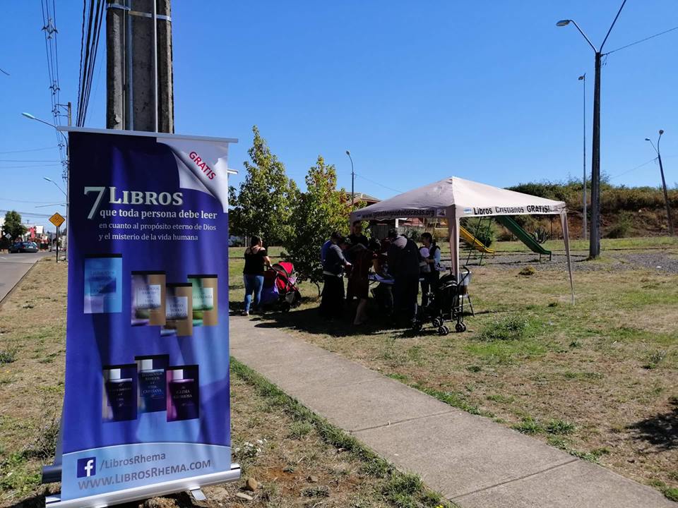 Agradecemos al Señor por el tiempo que nos da a fin de anunciar las inescrutables riquezas de Cristo. Hemos estado distribuyendo folletos y literatura cristiana gratuita en nuestra ciudad, Padre las Casas. Hechos 20:24 Pero en ninguna manera estimo mi vida como preciosa para mí mismo, con tal que acabe mi carrera, y el ministerio que recibí del Señor Jesús para dar solemne testimonio del evangelio de la gracia de Dios. “Tenemos que pelear la batalla para crear una atmósfera de evangelio en la iglesia”. (Predicar el evangelio en el principio de la vida, mje. 8, W. Lee, LSM)