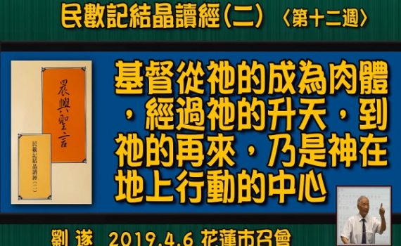Source: https://youtu.be/mf_JnuyUs7A 【刘遂《基督从祂的成为肉体,经过祂的升天,到祂的再来,乃是神在地上行动的中心》晨兴圣言─ 民数记结晶读经(二)〈第十二周〉】花莲市召会 【「Christ Being the Center of God’s Move on …