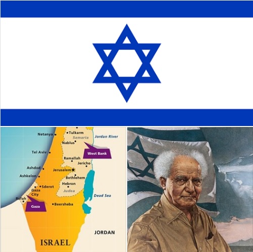公元70年,耶路撒冷的聖殿被羅馬軍隊焚毀;公元135年,猶太人興起大規模的反抗與叛亂,因而被羅馬趕出自己的土地,從此猶太人流亡到世界各地,原本猶太人的土地,也被羅馬人改稱為巴勒斯坦。後來統治此地的政權,先後有拜占庭、阿拉伯帝國、塞爾柱帝國、神聖羅馬帝國、蒙古帝國、鄂圖曼帝國,以及英國。猶太人在各地受到迫害,使他們深深體會一個民族沒有國家的痛苦,而向著復國的目標努力。終於在1948年5月14日,英國終止對巴勒斯坦之託管,以色列立即於次日宣佈建國,以本古里安為第一任總理。