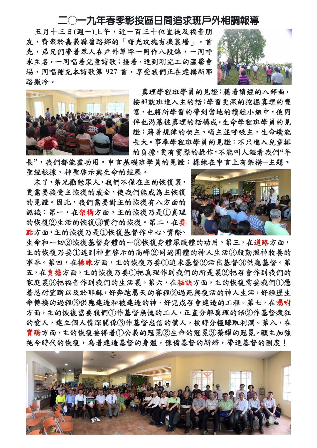 二〇一九年春季彰投区日间追求班户外相调报导 Report on 2019 Spring Day-time Pursuing Outdoor Blending in Changhua-Nantou 已发表 2019-05-16