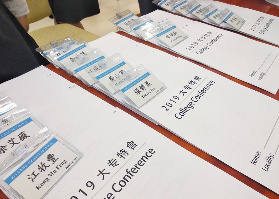 一年一度的大专特会又来临了。在这次的特会里,共有大约260位从各地来的大专生响应主的呼召,有份于在身体里的交通。午间四时在特会未开始前,就有一班服事报名的姊妹们已预备好手册、名牌等待著服事从外地来的圣徒们,当然在这服事之前,姊妹们也不忘记先借着祷告回到主的面前,在这小小的服事上学习依靠主并讨主的喜悦,一方面也学习在喜乐的灵里来服事。当时针指向四时三十分时,就有弟兄姊妹们陆陆续续地来到报名处报到。吃好了晚餐之后,弟兄姊妹们就带着预备好的灵前往会场。