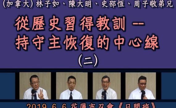 【《從歷史習得教訓–持守主恢復的中心線(二)》加拿大林子如、陳大明、史邵恆、周子敬弟兄】 […] 【从历史习得教训—持守主恢复的中心线(一)】花莲市召会(日间班)Learning Lessons form History – Keep the Central line of …