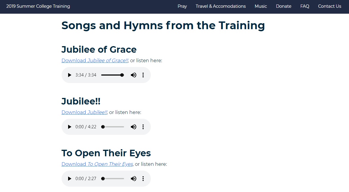 Songs and Hymns from the 2019 Summer College Training 来自二〇一九年暑期大专训练的诗歌 已发表 2019-08-04 Source: https://collegetraining.org/2019/music.php?fbclid=IwAR0Ww_ZkU2Btdd6os9r48Ujuacfonklfk3IfjEyH2E2vAAasoAehpbTfUv4