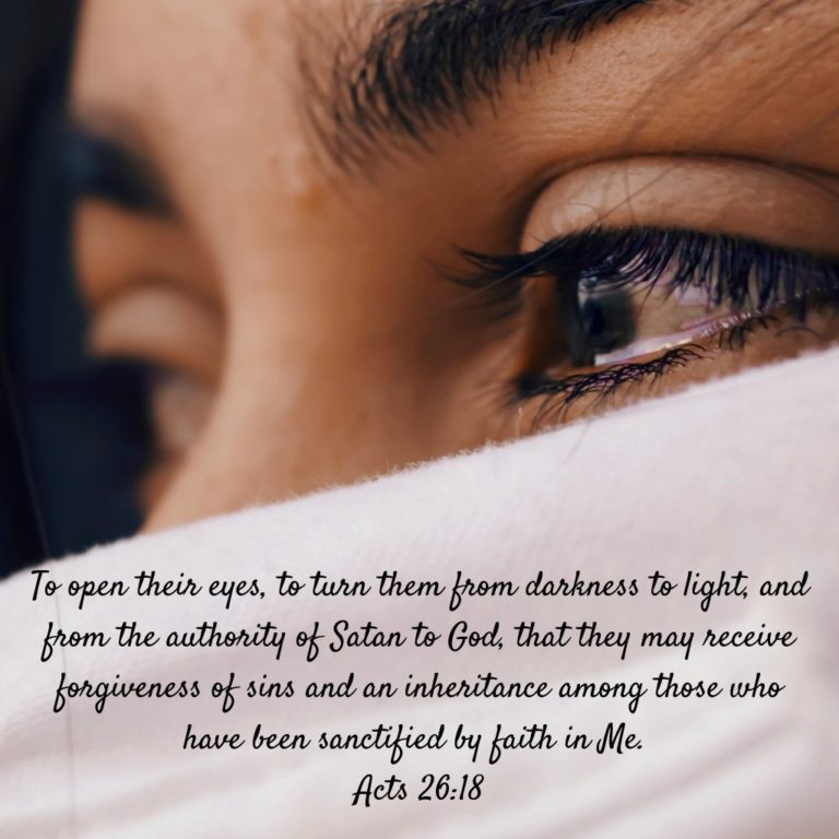 To open their eyes, to turn them from darkness to light, and from the authority of Satan to God, that they may receive forgiveness of sins and an inheritance among those who have been sanctified by faith in Me. Acts 26:18