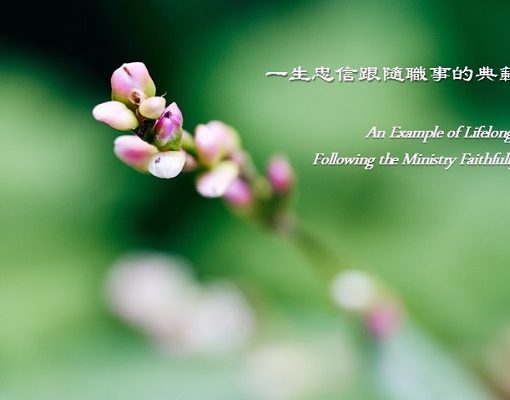 他不但甘心這樣作,他還願意他的孩子們都這樣作。我清楚記得他在聚會中說過:『俗話說幹一行怨一行,我倒希望我的孩子們個個都作傳道人。』他若不是認為作傳道人是如此榮耀,有價值,他就不會公開這樣說了。 很遺憾的是,他沒有機會親眼看見這願望的實現。今天晨曦、黎曦、我的弟兄克信,都是服事主的同工。我相信他是在信心中去見主的。對於服事主,他的態度是—我是個奴隸。他不是說奴僕或僕人。僕人是可以離開的,可以辭職的。奴隸是沒有自主權的,連性命也是屬於主人的。主人給予他妻子兒女,這妻子兒女都是屬於主人的。我還記得他說過多次,『奴隸的孩子還是奴隸』。這樣,我們家愛主事主到萬代,就是理所當然的!