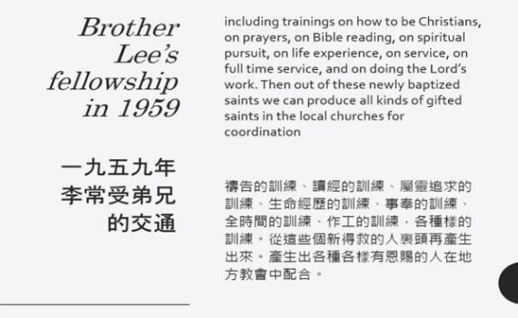 李常受弟兄於1959年的交通錄音 李常受弟兄生於1905年,1959年時正值54歲 Source: […] 李常受弟兄于一九五九年的交通录音 Brother Witness Lee’s Fellowship in 1959 – Audio