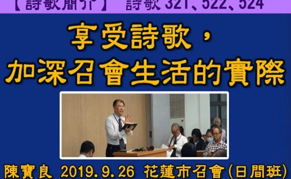 Source: https://youtu.be/OwHp0dKPWuk 【 陈宝良「享受诗歌,加深召会生活的实际】花莲市召会 【“Enjoying Hymns, Deepens the Reality of the Church …