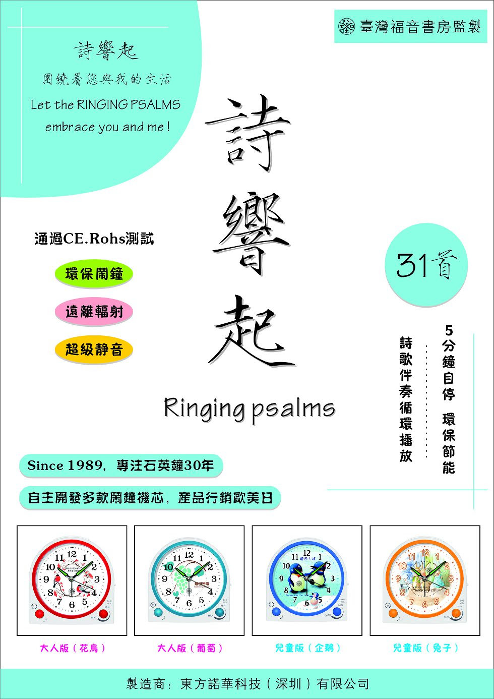 【《诗响起》二〇一九年基督徒书展现场限量供应】【“Ring Psalms” – 2019 Limited Supply on Christians Book Exhibition Live】 已发表 2019-10-30 《詩響起》2019基督徒書展現場限量供應-累銷千萬台高品質鬧鐘製造商,整合詩歌伴奏頂尖之作,首賣特價六百元! Source: https://www.twgbr.org.tw/products?query=CLOCK00