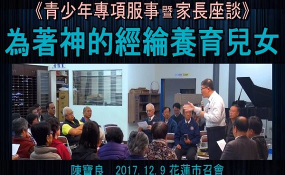 【 陳寶良「為著神的經綸養育兒女」】2017.12. 9 花蓮市召會『青少年專項服事暨家長座談』 S […] 【陈宝良「为着神的经纶养育儿女」】【“Nourishing Children for God’s Economy” Spoken by Chen Baoliang】