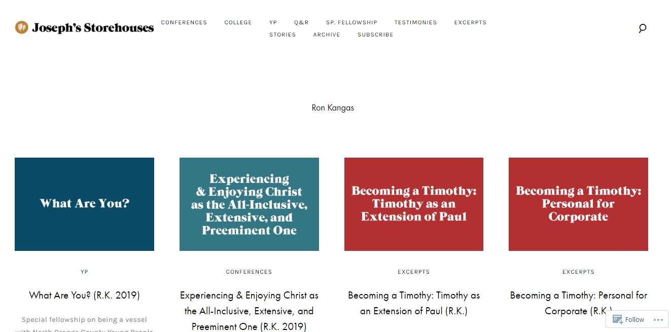 【Ron Kangas – Joseph’s Storehouses】【约瑟的粮仓—Ron Kangas弟兄】 已发表 2019-11-12 Source: https://jstorehouses.com/tag/ron-kangas/