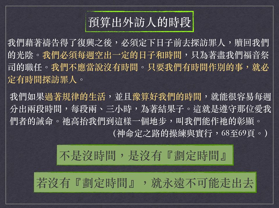👣附含三年科學化的實驗證明,實行神命定週週出外訪人,是可實行且非常有果效的!