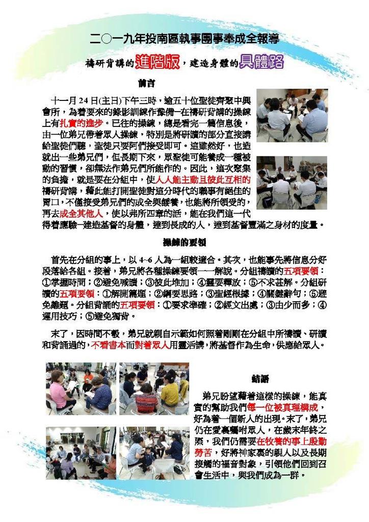【二〇一九年投南区执事团事奉成全报导】【Report on 2019 A Body of Deacons’ Service Perfecting Meeting in Nantou City】 已发表 2019-11-28