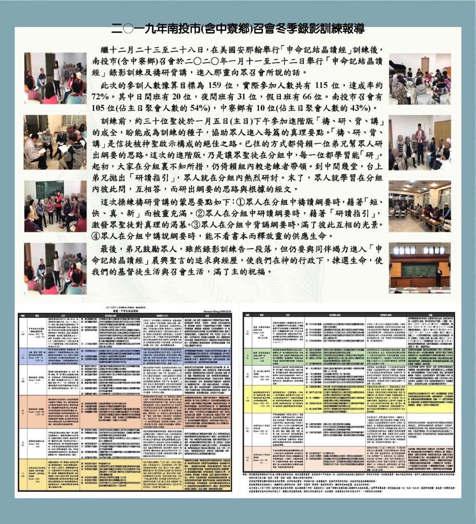 二〇一九年南投市(含中寮乡)召会冬季录影训练报导 Report on 2019 Winter Video Training in the Church of Nantou City and Zhongliao Township 已发表 2020-01-27