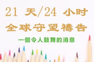 我们盼望这些更新能鼓励所有圣徒们坚定持续地祷告。愿主在这 21 天里得到祂所需要的祷告,为着祂