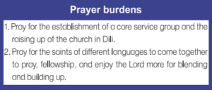 East Timor is one of the most densely Catholic countries in the world. Currently more than twenty saints are meeting in the capital city Dili. The local brothers are very burdened for the establishment of the church….