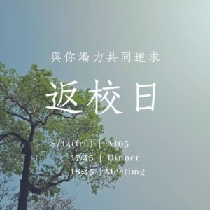8/14(五) 新盛A103,17:45用餐/18:45聚会,期盼各位的到来~~~💕