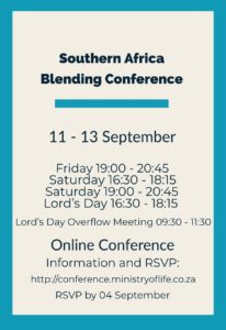 Southern Africa Blending Conference 已发表 2020-08-22 http://conference.ministryoflife.co.za/ Source:https://www.facebook.com/LMAfrica/posts/142656280827631