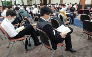 为了更贴近大一新生们的需要,训练也安排针对大学召会生活的交通。有『各校相调』让考上各大学的新生与各校服事者以及陪伴的大学生们多有相调。『如何读书与选课』与『属灵问答』,则用主的话帮助学生面对大学未来的问题。最后一天的展览聚会中,弟兄服事者们并没有到会场参加聚会,而是在祷告室屈膝祷告,除了向主悔改、更新奉献,也为着学生弟兄姊妹们祷告。在最后一天上午,服事者带领陪同者与大一新生们上台奉献,将自己交给主与召会。