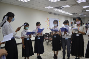 这三天我们上了很多课程,其中我最喜欢的是课程四—唱诗歌。因为唱诗歌很快乐,而且很多诗歌很好听,例如,建造召会的组成、选择做得胜者。我们早上也都会有晨兴的时间,晨兴完才吃早餐。这跟我在家完全不一样,在家一起床不会晨兴,也不可能晨兴完才吃早餐。我们晚上星光夜语的时候,姊姊们要我们说明天要突破的事情,我们也会努力突破,姊姊会鼓励我们,非常感谢这几天带领我们的姊姊们。(中山大区 夏淯潍)